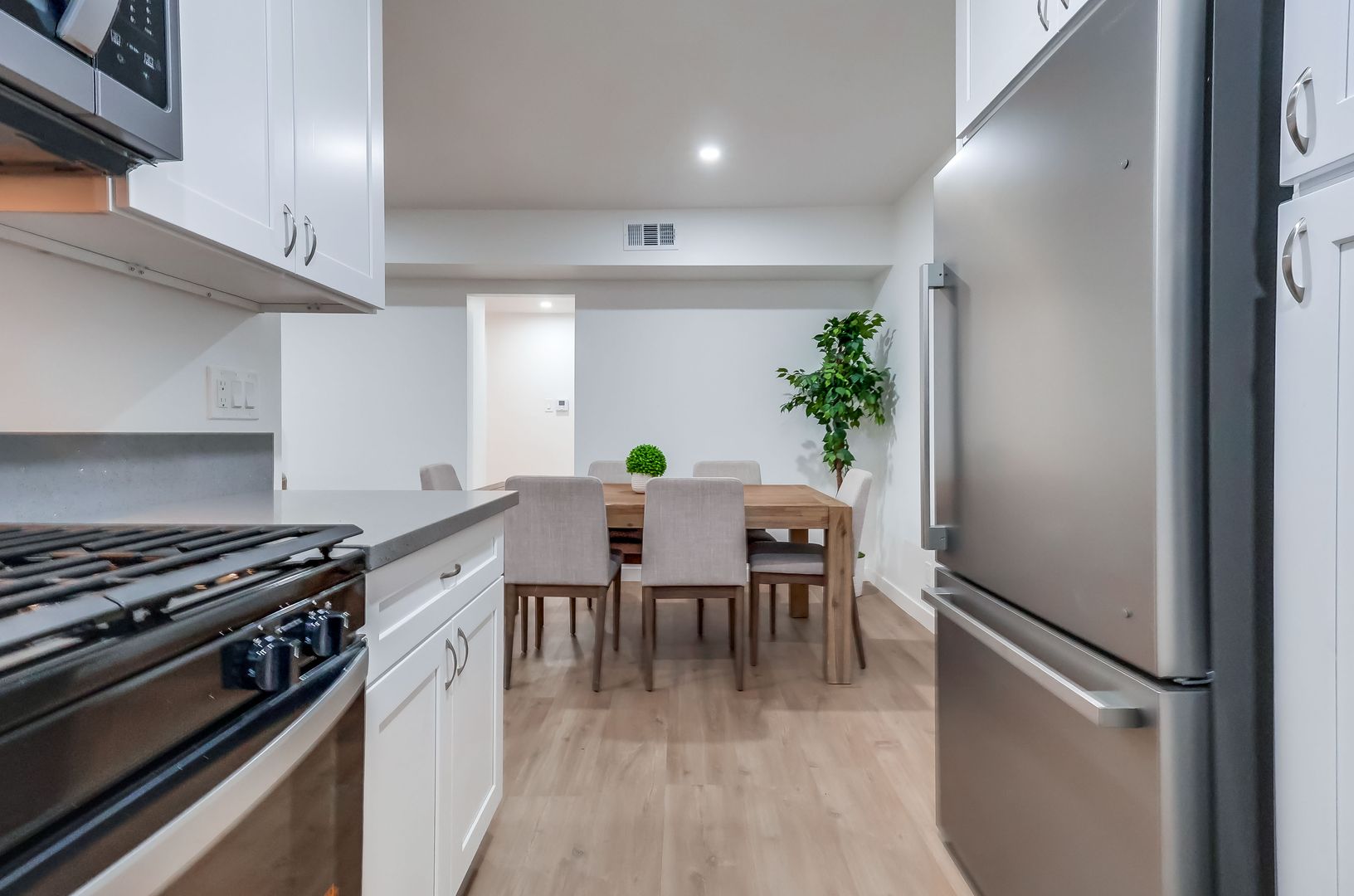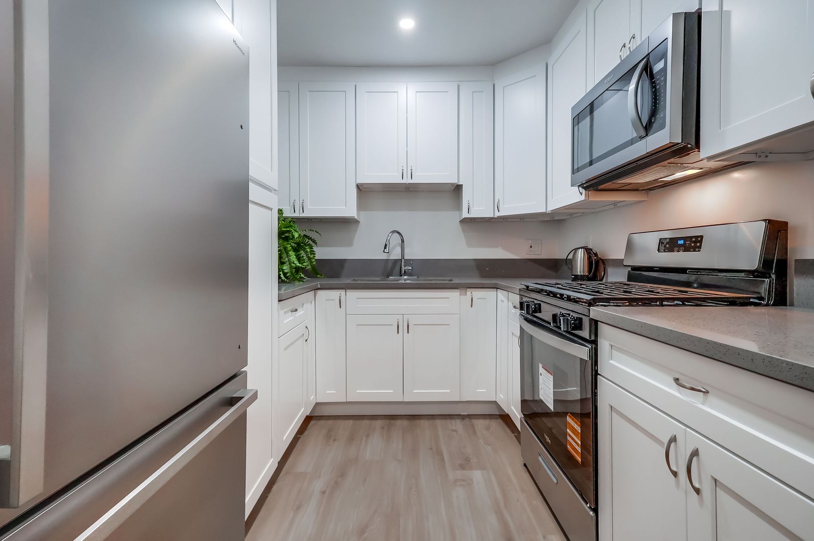Appliances included: refrigerator, oven/stove, and microwave.